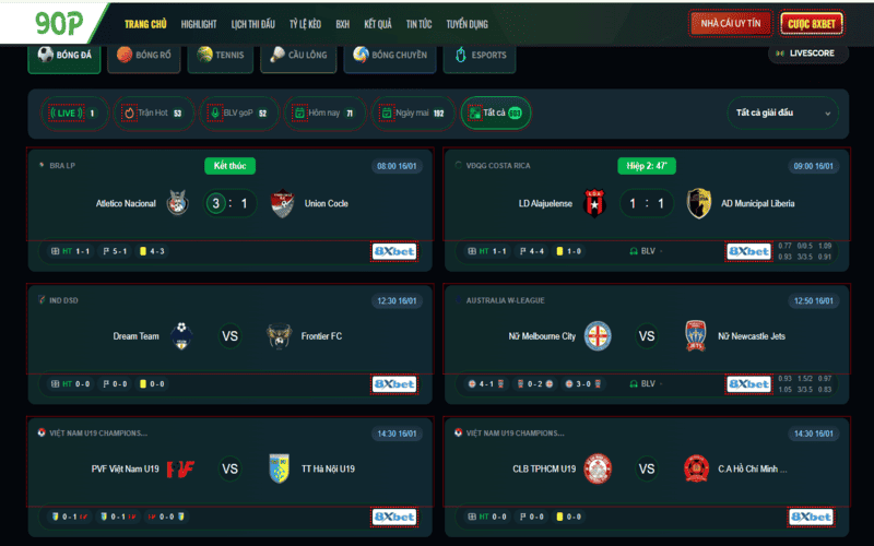 Với không gian giao diện được tối ưu theo hướng trực quan, giúp người dùng thao tác nhanh chóng, tra cứu lịch thi đấu hoặc lựa chọn trận đấu yêu thích chỉ trong vài cú nhấp chuột. Đây là một trong những yếu tố quan trọng giúp 90pTV tiếp cận tốt cả nhóm khán giả phổ thông lẫn người xem có kinh nghiệm lâu năm. Không cần phải là người quá rành về công nghệ thì bạn vẫn hoàn toàn có thể thao tác xem bóng đá và trải nghiệm trên nền tảng một cách dễ dàng.